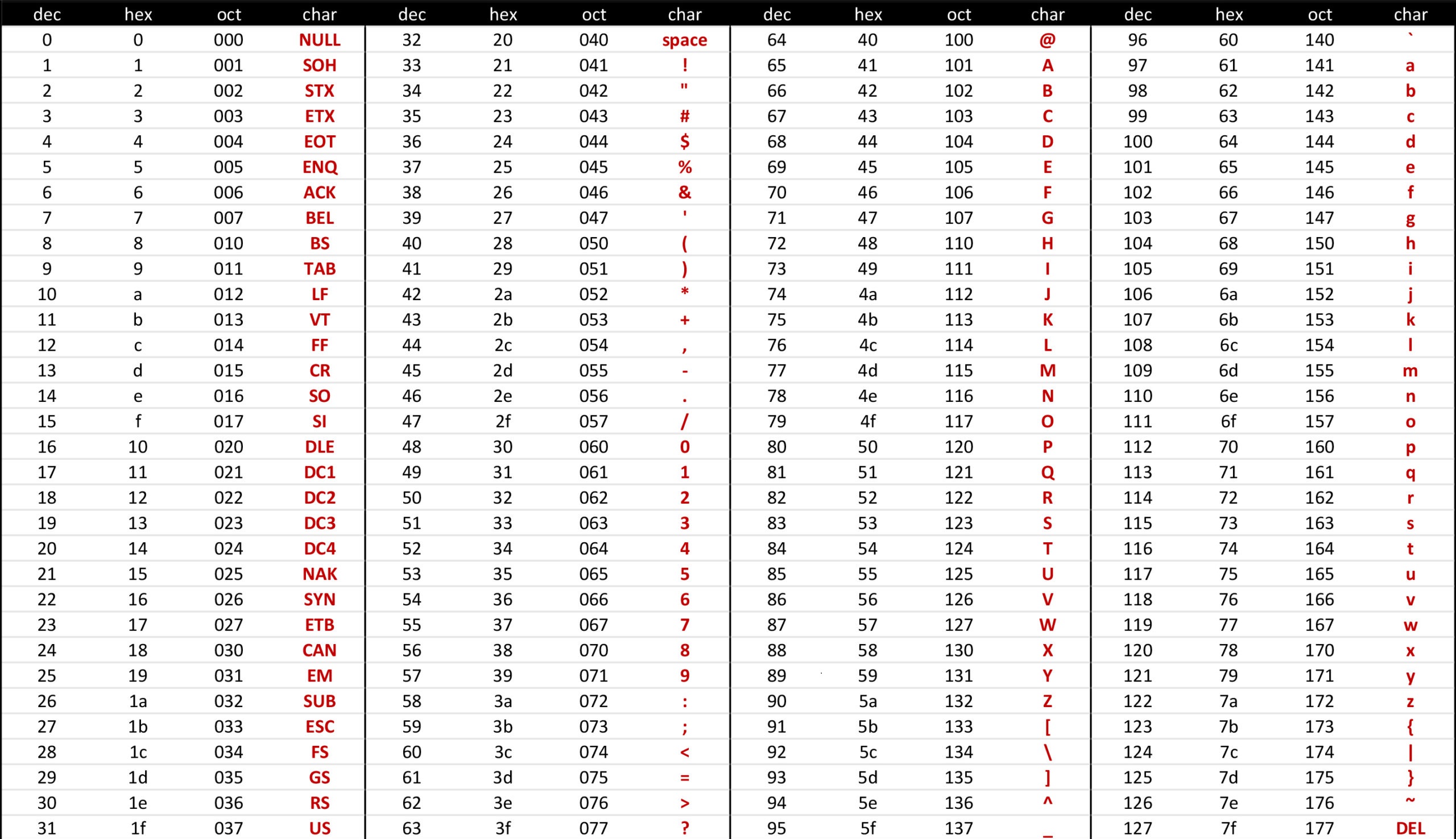 Asa cum am aratat pe scurt si in capitolul "Variabile si tipuri de date", in cazul caracterelor a fost definit un tip de date special: char. Astfel, spre deosebire de variabilele de tip numeric (int, float, etc.) care stocheaza cifre/numere (0,1,5, 100,11,23,etc), in cazul variabilelor de tip char se stocheaza chiar caractere uzuale ("a", "A" - "z","Z") precum si caractere speciale (".", ",", "?", "!", etc.). Fiecarui caracter in corespunde cate un cod numeric (cod ASCII) cu valori intre 0 si 127) - se poate vedea mai jos atasat tabelol cu valorile codurilor fiecarui caracter:
